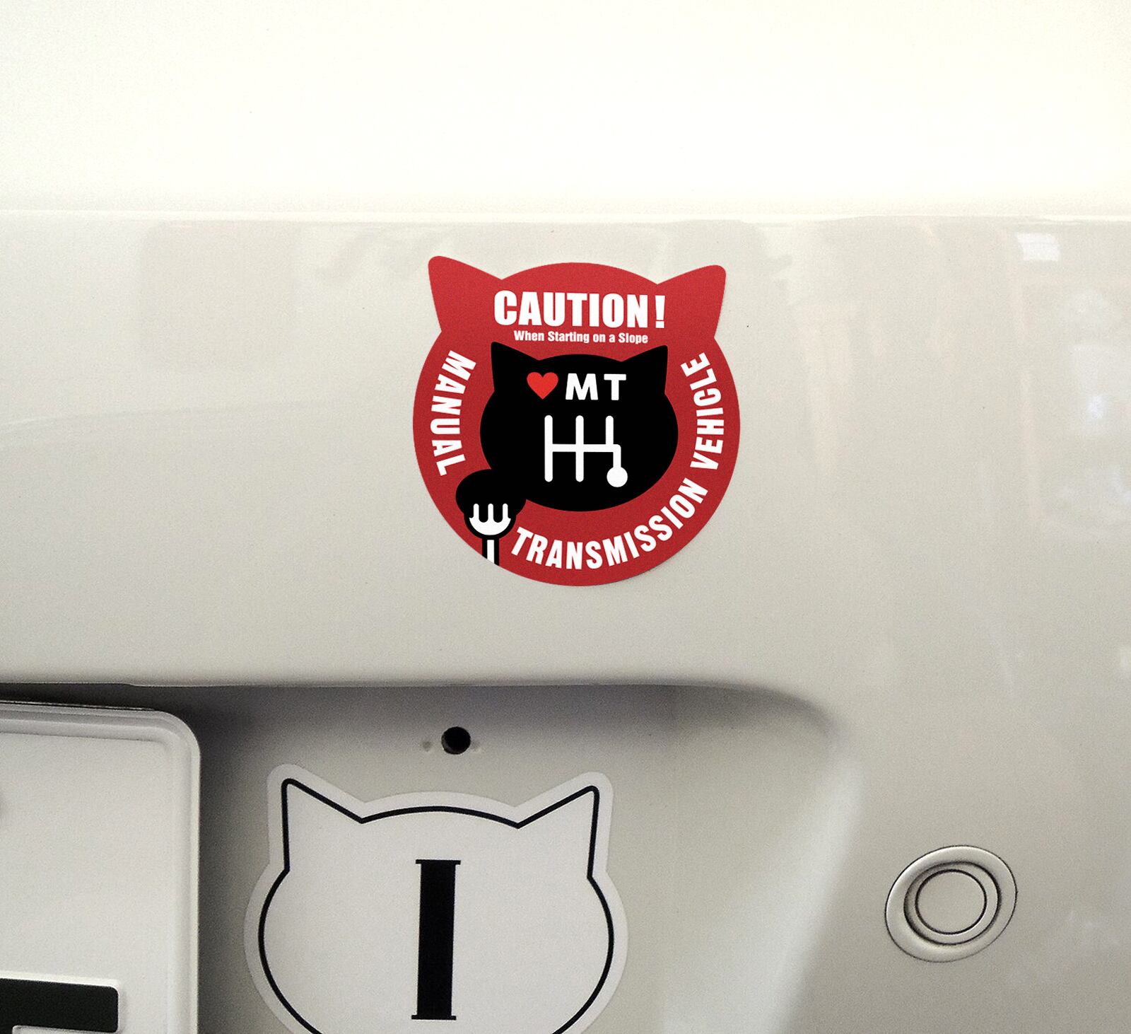 大変人気のMT車用認識ステッカー、在庫がすべて売り切れたので新しバージョンで登場です。今回は前回より目立つ赤でデザイン。シフトのステシックも入りました。昨今絶滅危惧種と言われているマニュアルミッション、これに乗ってる(操っている)人は自慢していいと思います。サイズは左右約70ミリになります。